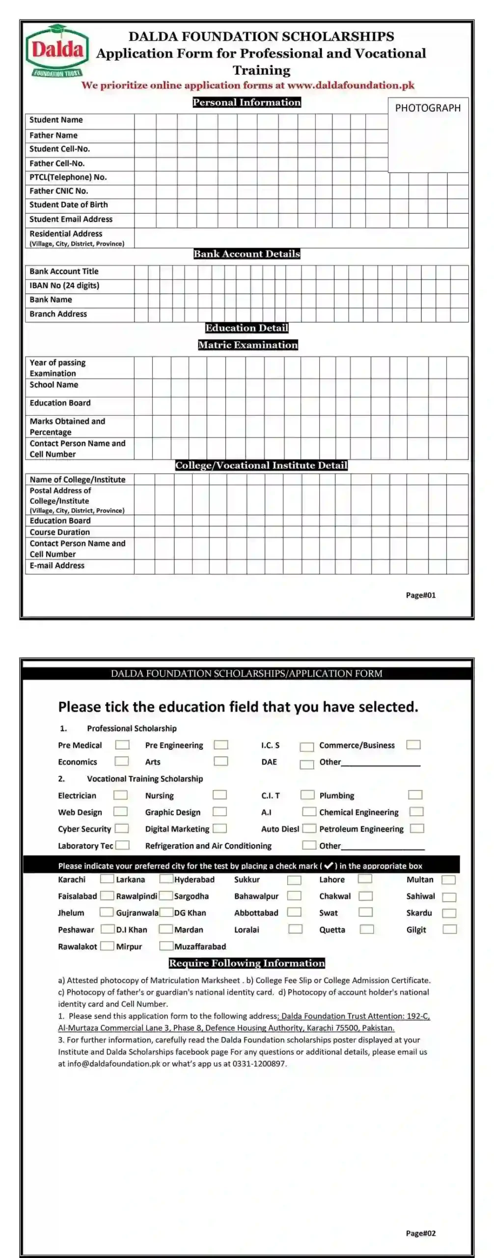 Go to www.daldafoundation.pk and open the Scholarships section. - Download or Fill the Form Online: